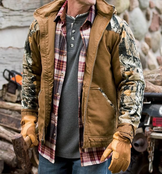 Built tough to work hard and play even harder! Stay warm and dry with the heavy-duty water-repellent 10 oz. sanded canvas that’s washed down for a comfortable fit right off the bat. Features plenty of hollow fill insulation, heavy duty zipper with storm flap, double interior pocket, and zip-off hood. High definition camo accents and embroidered Signature Buck logo.