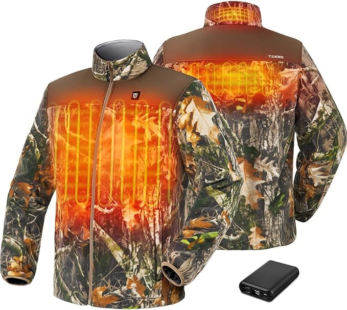 TIDEWE Men’s Heated Hunting Jacket with Rechargeable Battery Pack